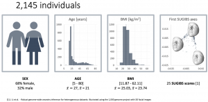 Metric Learner (GML) blocks for each property. These blocks are implemented using spiral convolutional operators and a novel equidistant mesh down-sampling and are trained by triplet loss function. Next, these embeddings are concatenated (Ei), combined with Pt and passed through the Fusion-Net to produce a matching score(i,t). Finally, this score can be evaluated in a verification scenario, in order to either verify whether individual ?’s characteristics match with DNAt.